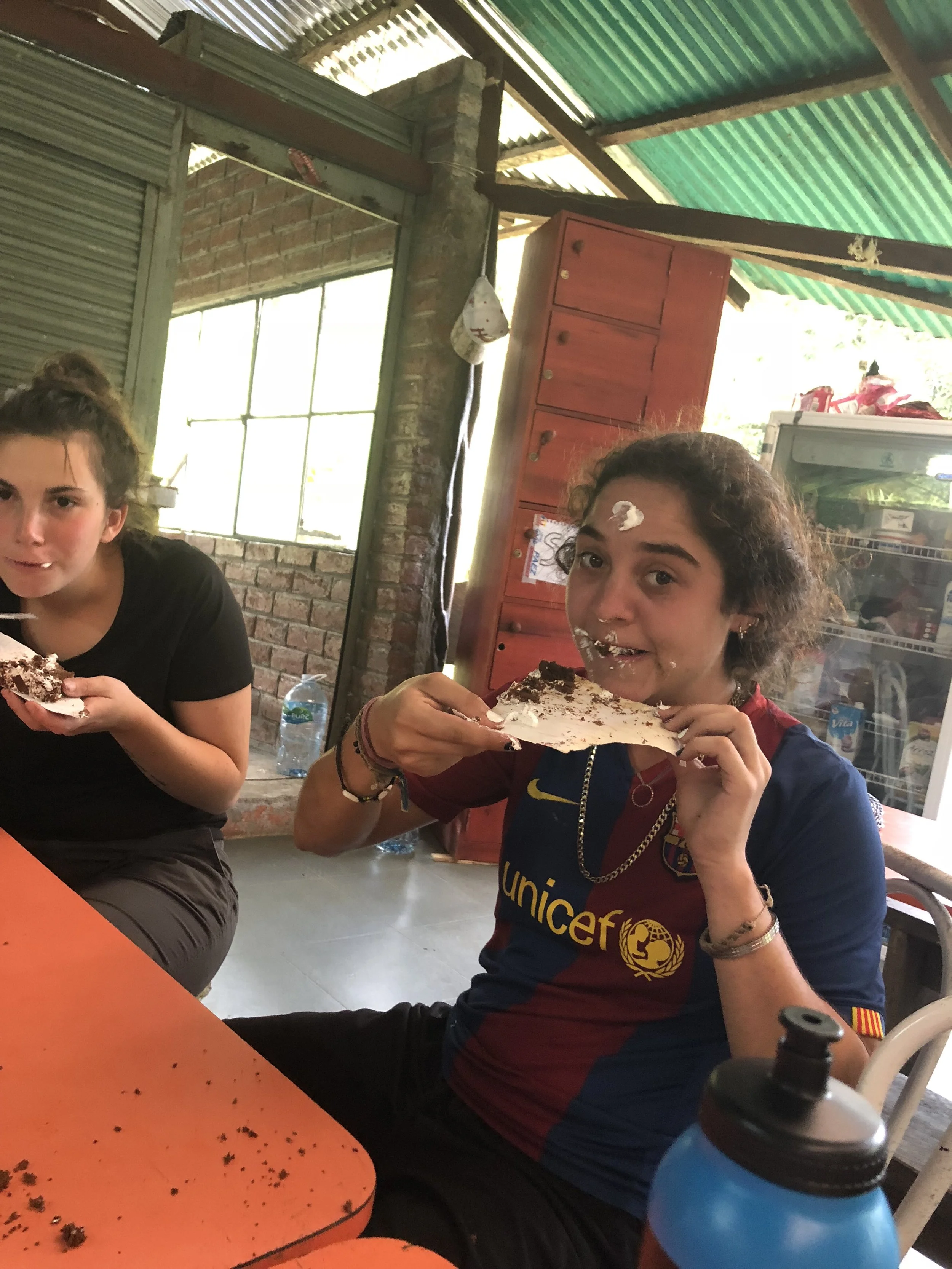 June 19 2018 June 19, 2018 Charli Morachnick Birthdays at Yanacocha call for cake 🎂 Laia seems content.